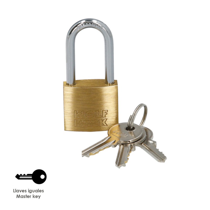 Candado laton arco largo llaves iguales nº2.