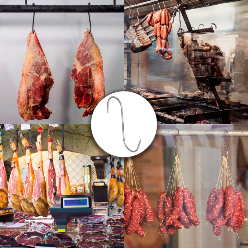 - Artículo también conocido como gancho acero inoxidable, gancho carnicero, gancho, gancho S, gancho para carne, gancho para productos cárnicos.