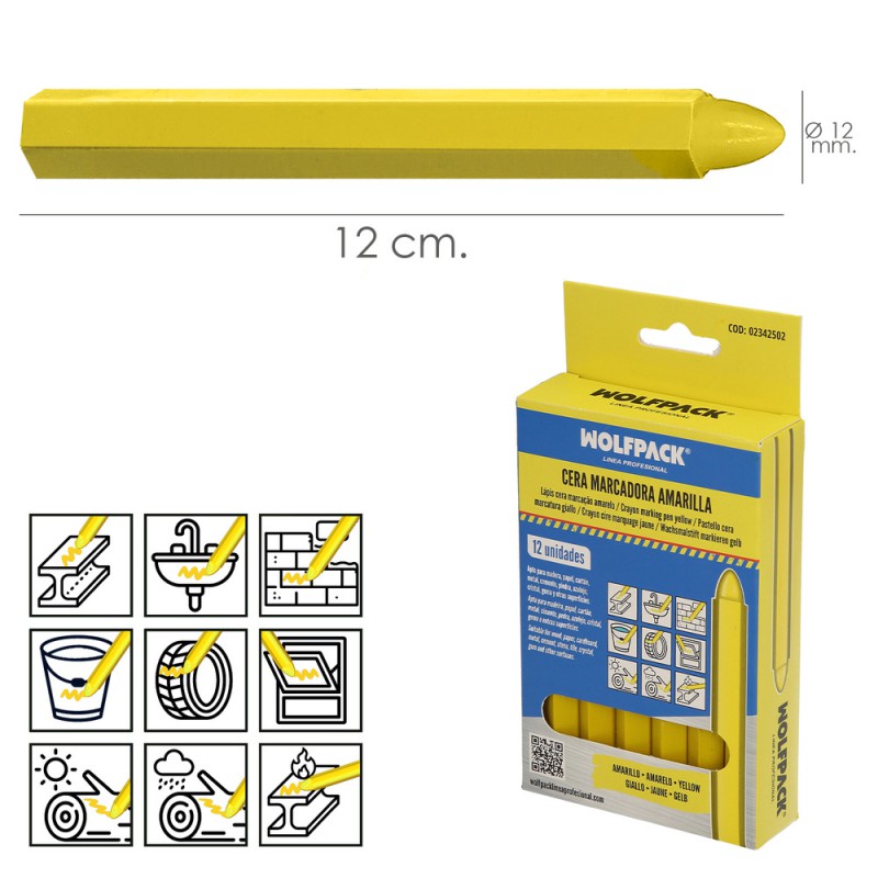 Cera Marcadora Amarilla (Caja 12 Piezas)